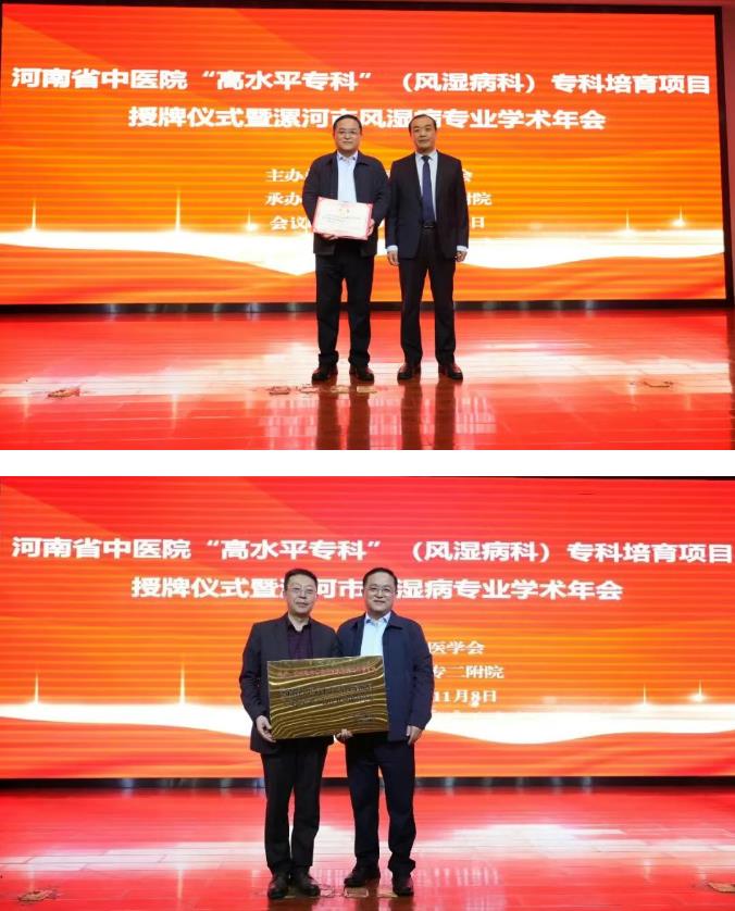 會(huì)上,王齊超院長(zhǎng)代表漯河醫(yī)專二附院為孟慶良教授頒發(fā)特聘專家聘書。孟慶良教授代表河南省中醫(yī)院為漯河醫(yī)專二附院“高水平???rdquo;(風(fēng)濕病科)專科培育項(xiàng)目授牌。此次授牌搭建起河南省中醫(yī)院與漯河醫(yī)專二附院的??乒步蛄?,不僅將推動(dòng)漯河地區(qū)風(fēng)濕病??频捏w系化發(fā)展,更有望通過中西醫(yī)結(jié)合診療模式的深化,為我市風(fēng)濕病患者帶來更優(yōu)質(zhì)、便捷的醫(yī)療資源。
