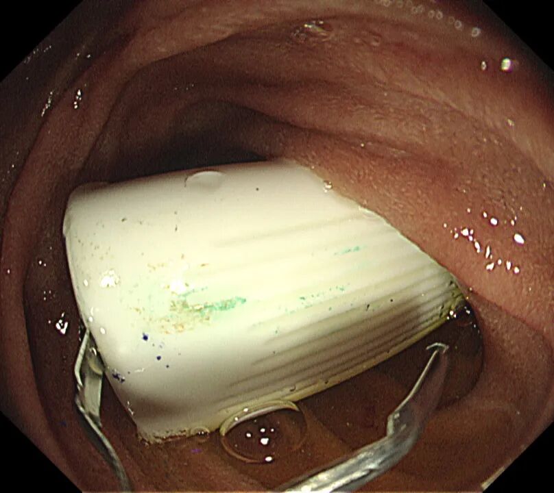 時(shí)間不等人,雖已臨近晚7點(diǎn),市二院第一時(shí)間啟動(dòng)應(yīng)急響應(yīng)機(jī)制,內(nèi)鏡室、麻醉科醫(yī)護(hù)技立即返崗就位,并經(jīng)院辦等職能部門積極協(xié)調(diào),盡可能縮短術(shù)前準(zhǔn)備時(shí)間,迅速制定了取出異物的方案。隨后,在全身麻醉下,朗朗安然入睡,醫(yī)生通過纖細(xì)的胃鏡,精準(zhǔn)地找到了那個(gè)“惹事”的筆帽位于十二指腸內(nèi),并順利將其取出。整個(gè)過程僅用時(shí)十幾分鐘,朗朗術(shù)后很快蘇醒,觀察無(wú)礙后平安回家。