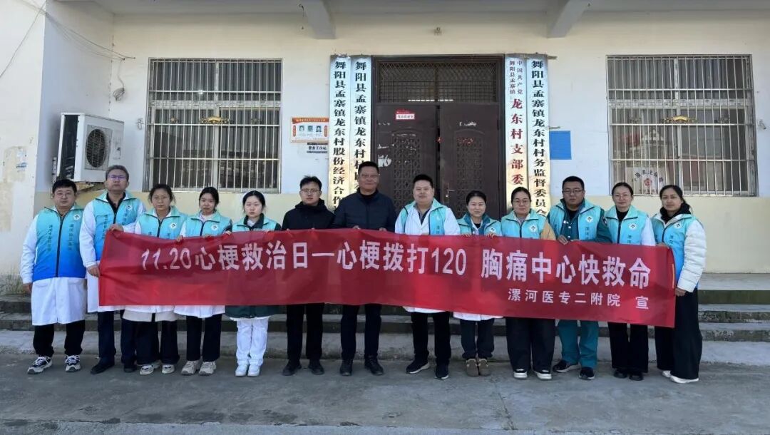 2025年11月20日是第12個(gè)“中國心梗救治日”,當(dāng)天,醫(yī)院組織心血管內(nèi)科、急診科、胸外科、骨腫瘤科等相關(guān)科室醫(yī)務(wù)人員到舞陽縣孟寨鎮(zhèn)龍東村開展義診活動(dòng)?;顒?dòng)以“心梗撥打120,胸痛中心快救命”為主題,通過專家義診、發(fā)放宣傳資料、科普講解及心肺復(fù)蘇實(shí)操,系統(tǒng)性地向群眾全面普及急性心肌梗死的相關(guān)知識(shí)、心血管疾病風(fēng)險(xiǎn)評(píng)估、健康咨詢及用藥指導(dǎo)等服務(wù)。