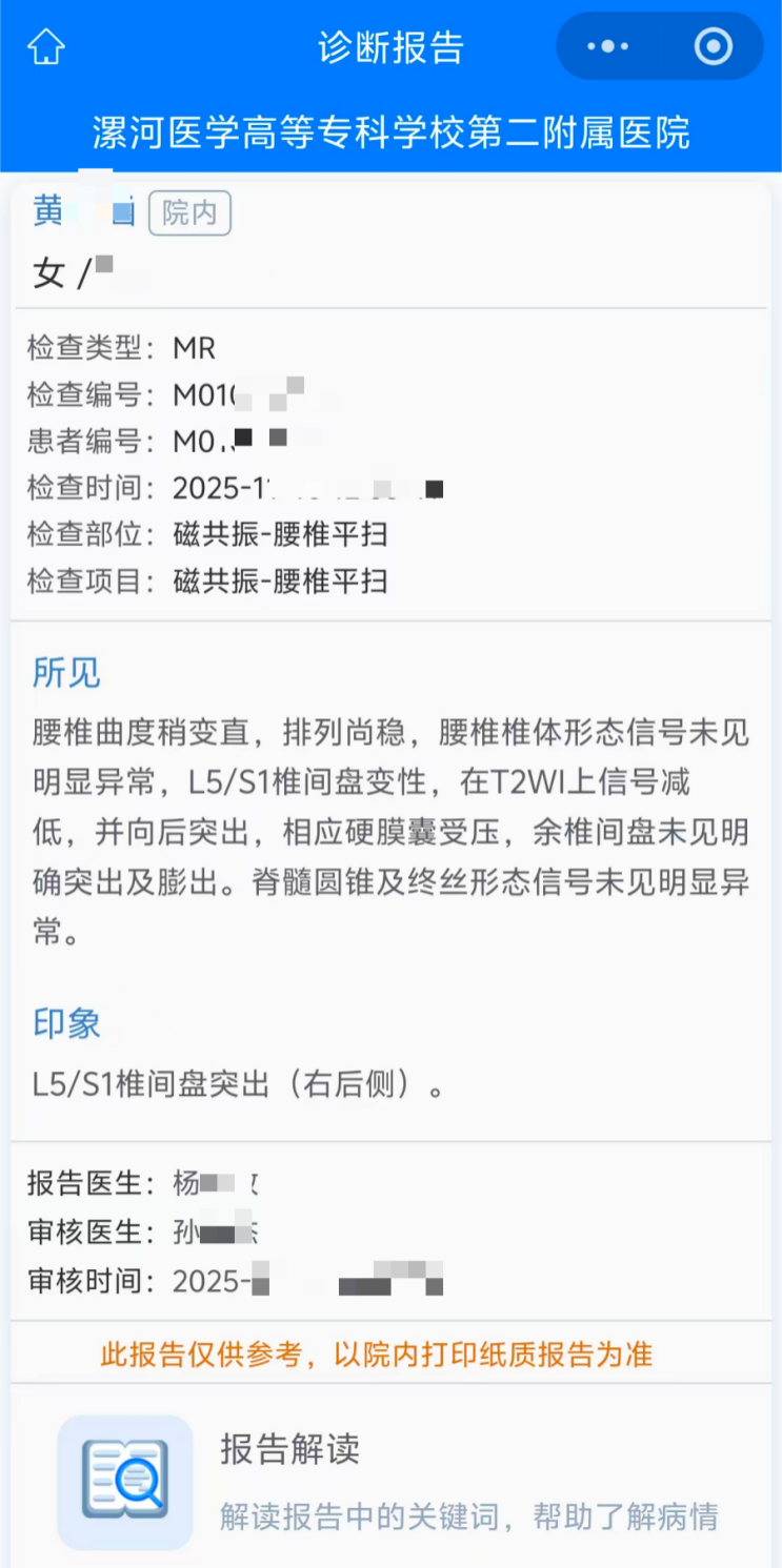 04 首先點(diǎn)擊“查看報(bào)告”后查看到的患者的影像報(bào)告 。
