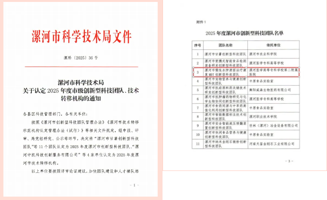 近日,漯河市科技局正式公布2025年度市級(jí)創(chuàng)新科技團(tuán)隊(duì)認(rèn)定名單,漯河醫(yī)專(zhuān)二附院(漯河市骨科醫(yī)院、漯河市立醫(yī)院)“慢性水腫潰面治療康復(fù)MDT創(chuàng)新型科技團(tuán)隊(duì)”憑借其創(chuàng)新的多學(xué)科協(xié)作模式、扎實(shí)的臨床實(shí)踐與顯著的診療成果,從全市數(shù)十家申報(bào)團(tuán)隊(duì)中脫穎而出,成功獲評(píng)。這一榮譽(yù)標(biāo)志著醫(yī)院在慢性復(fù)雜創(chuàng)面及疑難傷口治療領(lǐng)域的綜合實(shí)力與創(chuàng)新水平獲得了市級(jí)層面的高度認(rèn)可。