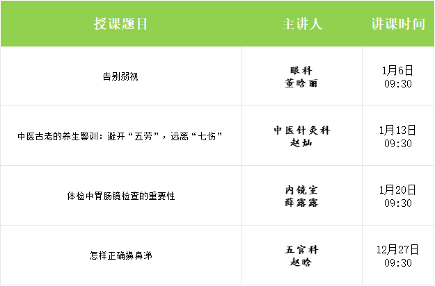 【科普講座】漯河市二院門診健康科普周周講2026年1月講座安排