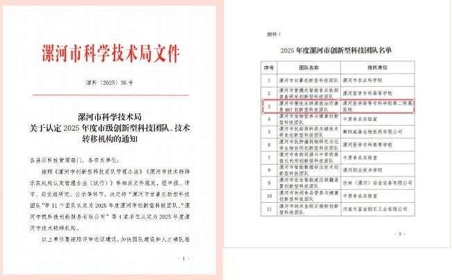 近日,漯河市科技局正式公布2025年度市級(jí)創(chuàng)新科技團(tuán)隊(duì)認(rèn)定名單,醫(yī)院“慢性水腫潰面治療康復(fù)MDT創(chuàng)新型科技團(tuán)隊(duì)”憑借其創(chuàng)新的多學(xué)科協(xié)作模式、扎實(shí)的臨床實(shí)踐與顯著的診療成果,從全市數(shù)十家申報(bào)團(tuán)隊(duì)中脫穎而出,成功獲評(píng)。