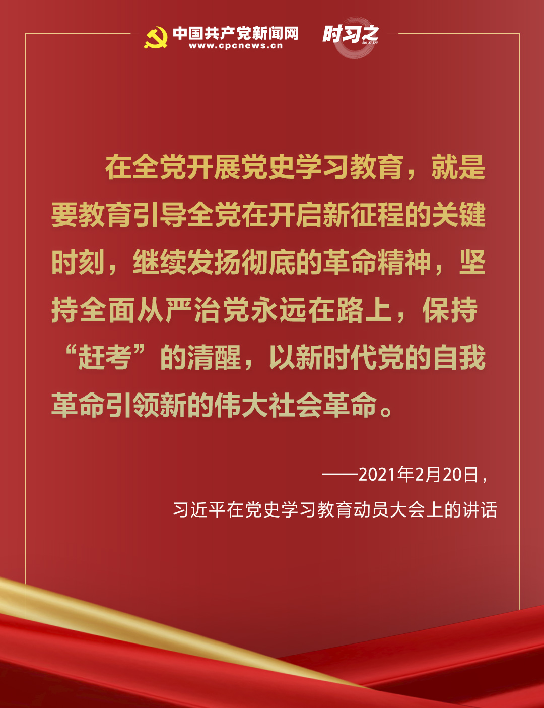 歷史不僅蘊(yùn)藏著我們“從哪里來(lái)”的密碼,也是標(biāo)定我們“走向何方”的路標(biāo)。當(dāng)前,正在全黨集中開(kāi)展的黨史學(xué)習(xí)教育,正是為了把黨的歷史學(xué)習(xí)好、總結(jié)好,使我們的黨永遠(yuǎn)不變質(zhì)、我們的紅色江山永遠(yuǎn)不變色。