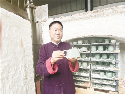 徐大磊向記者展示他燒制的汝瓷。