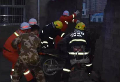 救援官兵趕到后發(fā)現(xiàn),事發(fā)地點(diǎn)位于馮莊村兩棟樓之間的一堵用磚塊壘成的擋墻上,此時(shí)擋墻已被撞開(kāi)一個(gè)口子。據(jù)知情人介紹,一名男子連人帶車(chē)都被埋壓在倒塌的墻體磚塊中,目前也不知道是生是死。