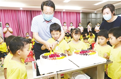 6月1日,市委書(shū)記蒿慧杰在市兒童福利院與小朋友們一起切蛋糕并分享節(jié)日快樂(lè)。記者 王慶建 攝