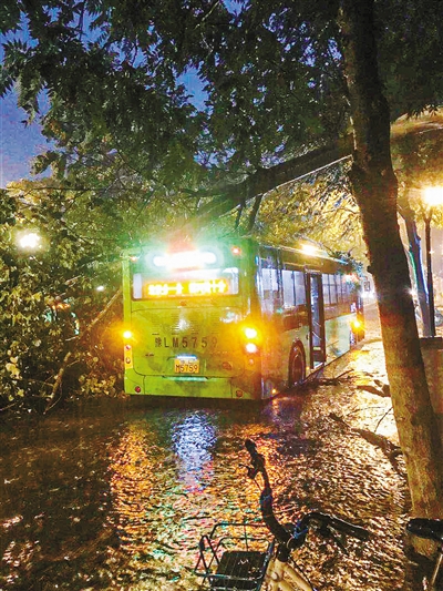 8月18日傍晚強(qiáng)降雨過程中,市區(qū)洪河路與嵩山路交叉口附近一棵楊樹折斷,砸到一輛經(jīng)過的105路公交車和一輛轎車,幸無人員受傷。