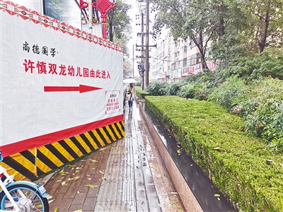 “這么長的一段路都被圍擋圍了起來,中間沒有留出入口,幼兒園也在圍擋內,我們每天接送學生都要經過這里,太不方便了。”一名送孩子上幼兒園的家長告訴記者,圍擋外的交通也相當擁擠。