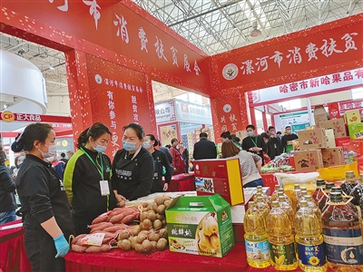 “全面小康,一個不落”“脫貧攻堅大舞臺,有你參與更精彩”“以購代捐解民憂,消費(fèi)扶貧助發(fā)展”……在漯河市消費(fèi)扶貧展會上,紅色背景墻上處處都是與“扶貧”相關(guān)的宣傳標(biāo)語。香菇、鴨蛋、紅薯等富有特色的農(nóng)產(chǎn)品令采購商們收獲滿滿。