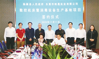 11月11日,市委書記蒿慧杰出席臨潁縣人民政府與東莞市皓晟實(shí)業(yè)有限公司數(shù)控機(jī)床暨消毒設(shè)備生產(chǎn)基地項(xiàng)目簽約儀式。記者 王慶建 攝