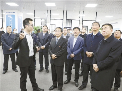 11月30日上午,市委書記蒿慧杰、市長劉尚進與來賓一起參觀中原鯤鵬創(chuàng)新中心漯河分中心等平臺。