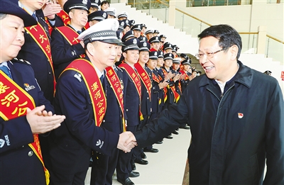蒿慧杰指出,設(shè)立“中國人民警察節(jié)”,充分體現(xiàn)了習近平總書記和黨中央、國務(wù)院對人民警察隊伍的關(guān)心關(guān)懷。舉行慶祝首屆中國人民警察節(jié)暨2020漯河公安職業(yè)榮譽儀式,是貫徹落實黨中央、國務(wù)院決策部署的實際行動,也是市委、市政府對全市人民警察隊伍的充分肯定和高度褒獎。 近年來,全市公安機關(guān)在市委、市政府的堅強領(lǐng)導(dǎo)下,堅持以習近平新時代中國特色社會主義思想為指導(dǎo),圍繞中心、服務(wù)大局,忠實履行維穩(wěn)第一責任,主動服務(wù)發(fā)展第一要務(wù),始終走在防風險、保安全、護穩(wěn)定、促發(fā)展的最前沿,在安保維穩(wěn)、掃黑除惡、疫情防控、脫貧攻堅、環(huán)保攻堅、創(chuàng)文攻堅等重大工作中,展現(xiàn)了公安風采、貢獻了公安力量,也涌現(xiàn)出一大批先進集體和先進個人,充分體現(xiàn)了警察隊伍的政治品格、公仆情懷、擔當精神。我代表市委、市政府向受表彰的先進模范表示熱烈的祝賀,向全市廣大公安民警及其家屬致以節(jié)日的問候和崇高的敬意。當前,我市已進入全面推進社會主義現(xiàn)代化建設(shè)的新階段,希望全市公安機關(guān)和廣大公安民警以“中國人民警察節(jié)”的設(shè)立為新起點,深入學習貫徹習近平總書記關(guān)于做好公安工作的重要講話、訓(xùn)詞和指示批示精神,牢記“對黨忠誠、服務(wù)人民、執(zhí)法公正、紀律嚴明”的新時代公安工作總要求,大力弘揚英模精神、繼承優(yōu)良傳統(tǒng),以高度的政治責任感、良好的精神狀態(tài)、扎實的工作作風,全力以赴做好維護國家安全和社會穩(wěn)定各項工作,為落實新時代漯河經(jīng)濟社會發(fā)展“五個一”總體思路營造良好的社會環(huán)境,以優(yōu)異成績迎接中國共產(chǎn)黨成立100周年。各級黨委、政府要進一步關(guān)心和支持公安工作,加大綜合保障力度,落實從優(yōu)待警舉措,讓廣大公安民警工作安心、生活舒心。