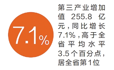 分產(chǎn)業(yè)看,三次產(chǎn)業(yè)增加值增速全面領(lǐng)先。第一產(chǎn)業(yè)增加值18.4億元,同比增長2.9%,高于全省平均水平0.3個百分點,居全省第四位;第二產(chǎn)業(yè)增加值189.2億元,同比增長11.7%,高于全省平均水平5個百分點,居全省第二位;第三產(chǎn)業(yè)增加值255.8億元,同比增長7.1%,高于全省平均水平3.5個百分點,居全省第一位。