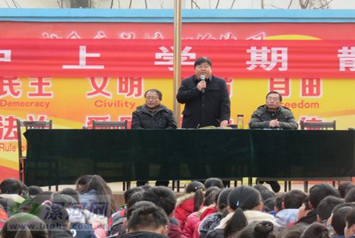 忙碌而又充實(shí)的一個(gè)學(xué)期結(jié)束了,為表彰優(yōu)秀,鼓勵(lì)先進(jìn),樹立典型,營造濃厚的學(xué)習(xí)氛圍,進(jìn)一步調(diào)動全體學(xué)生學(xué)習(xí)的主動性和積極性, 2016年1月15日上午9點(diǎn),漯河市郾城區(qū)裴城鎮(zhèn)初級中學(xué)散學(xué)典禮在該校教學(xué)樓前隆重舉行,該校全體師生參加了散學(xué)典禮。