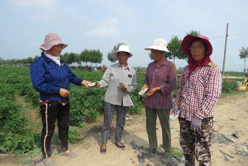 圖為臨潁縣王孟鎮(zhèn)石拐村自安產業(yè)扶貧基地的社員們,在辣椒基地采摘辣椒時的情景。