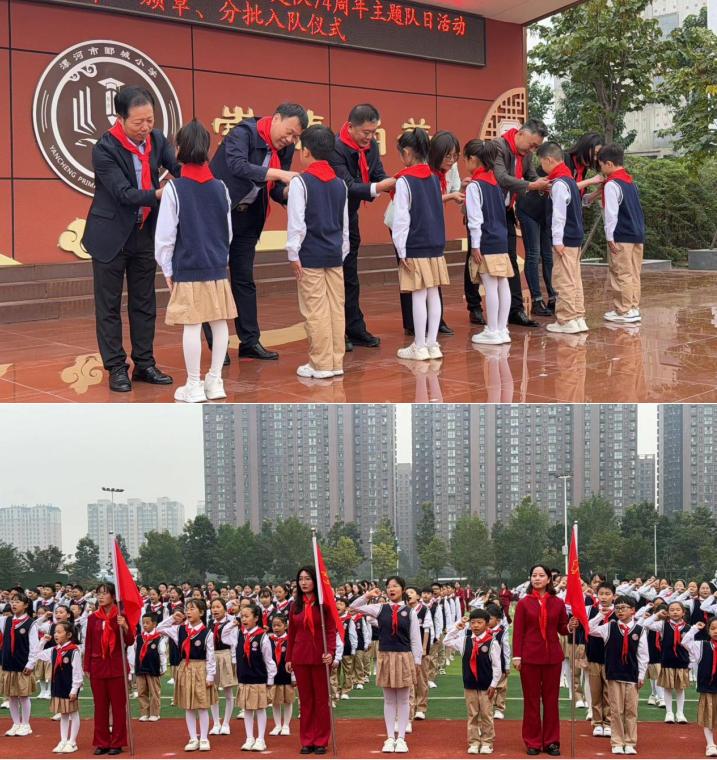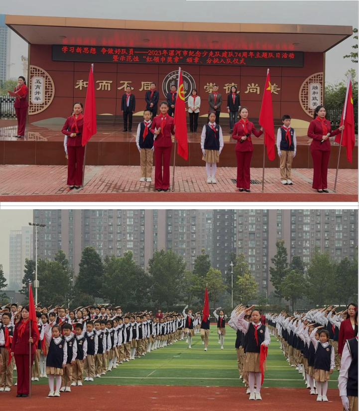為加強(qiáng)對(duì)少年兒童的思想引領(lǐng),激發(fā)少先隊(duì)員的光榮感和組織歸屬感,示范推動(dòng)全市少先隊(duì)分批入隊(duì)和紅領(lǐng)巾爭(zhēng)章工作,10月12日上午,在第74個(gè)中國(guó)少年先鋒隊(duì)建隊(duì)日來(lái)臨之際,由共青團(tuán)漯河市委、漯河市教育局、漯河市少工委主辦,郾城小學(xué)承辦的“學(xué)習(xí)新思想 爭(zhēng)做好隊(duì)員”——2023年漯河市紀(jì)念少先隊(duì)建隊(duì)74周年主題隊(duì)日活動(dòng)暨示范性“紅領(lǐng)巾獎(jiǎng)?wù)?rdquo;頒章、分批入隊(duì)儀式在郾城小學(xué)圓滿(mǎn)舉行。
