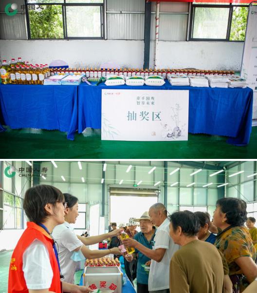 在伴手禮發(fā)放區(qū)和小禮品抽獎區(qū),河南國壽貼心地為居民準備了米、油、艾灸錘等生活必需品,以及適宜夏季飲用的養(yǎng)生飲品——酸梅湯、飲用水和小扇子用于祛暑,為鄉(xiāng)親們帶來了實實在在的暖心關(guān)懷。