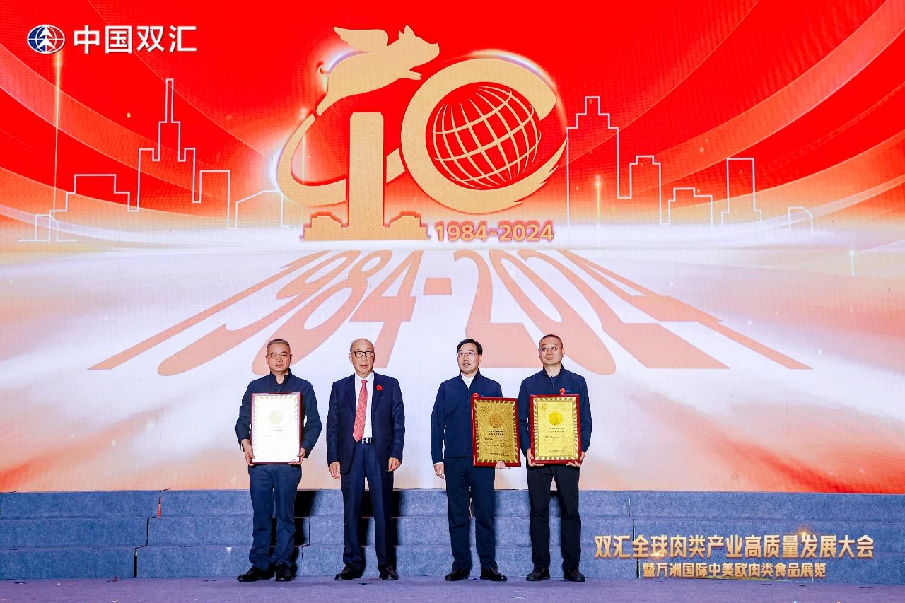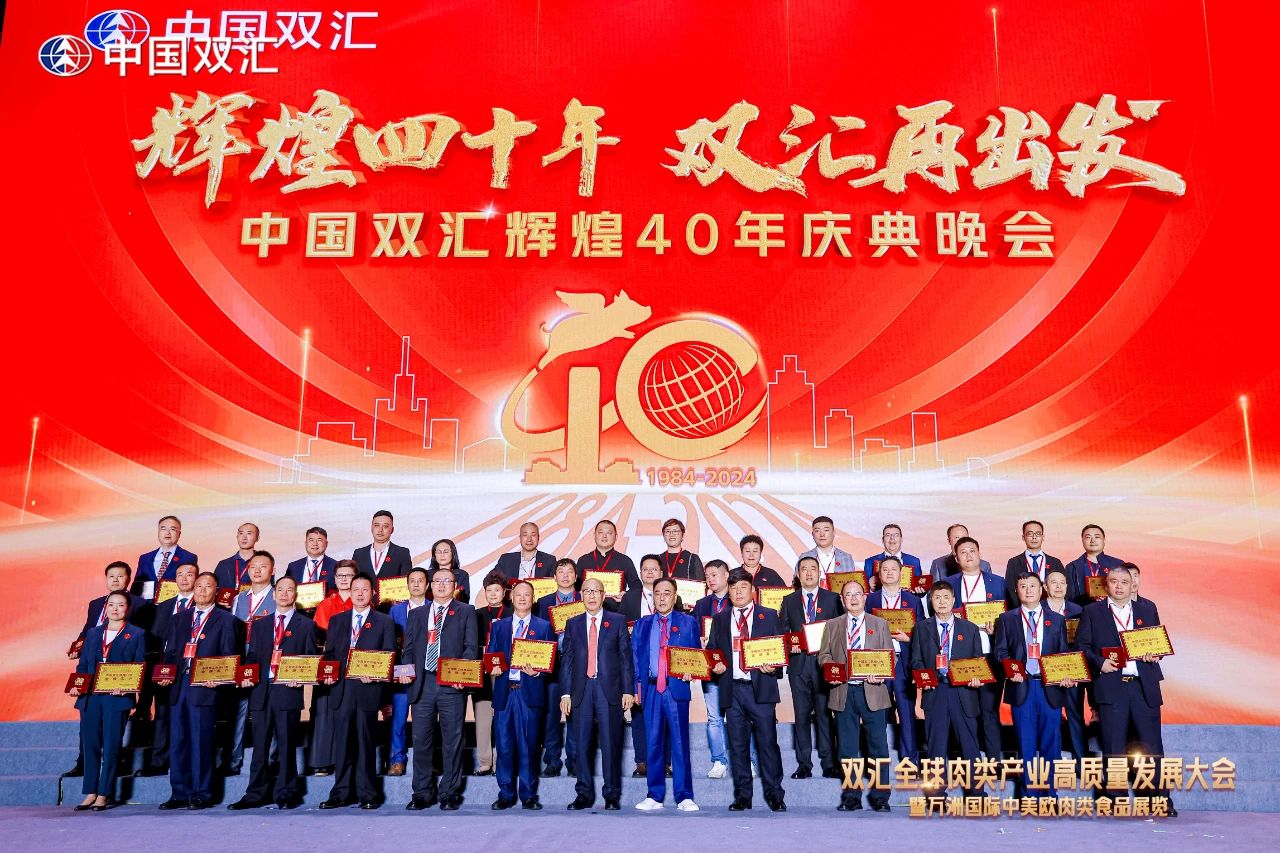 萬隆為獲得“中國雙匯輝煌40年突出貢獻(xiàn)項(xiàng)目公司”的單位頒獎(jiǎng)