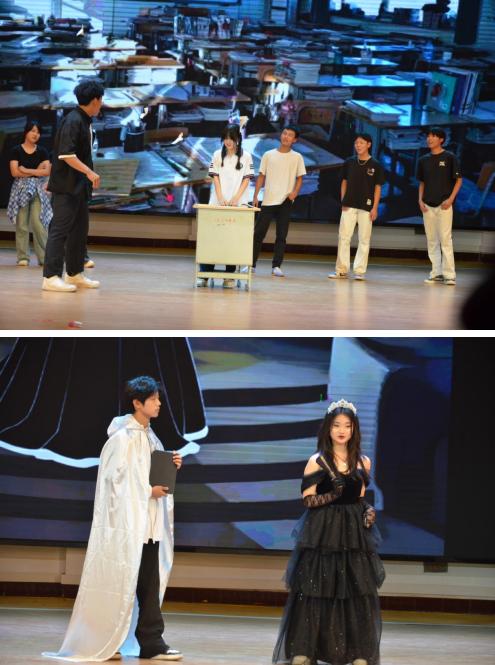 活動(dòng)現(xiàn)場(chǎng),演出學(xué)生憑借扎實(shí)的臺(tái)詞功底、細(xì)膩的肢體語言與極具感染力的情緒表達(dá),將角色刻畫得入木三分。幕后團(tuán)隊(duì)同樣“星光閃耀”,從手繪道具、動(dòng)態(tài)背景投影到音效配合,每個(gè)環(huán)節(jié)都彰顯著同學(xué)們的匠心巧思?,F(xiàn)場(chǎng)的評(píng)委老師從劇本創(chuàng)意、表演技巧、舞臺(tái)效果等多個(gè)維度對(duì)各劇目進(jìn)行了綜合評(píng)分,。最后夢(mèng)想合唱團(tuán)的合唱“世界贈(zèng)與我”與說文解字社團(tuán)的“字圣故里美少年 說文解字話傳承”環(huán)節(jié),更是點(diǎn)燃全場(chǎng)熱情將全場(chǎng)氣氛推入高潮,將藝術(shù)欣賞與音樂文學(xué)深度交融。