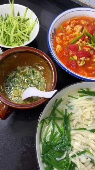 民主路的樹蔭下,面碗端舉成生活群像。荊芥葉與黃瓜絲碧玉般覆在瑩白面條上,蒜汁澆落的剎那,辛香漫過梧桐枝椏。穿汗衫的老伯捧起海碗,筷子翻攪間發(fā)出暢快的“呼嚕”聲;孩童踮腳扒著桌沿,看母親用荊芥葉卷起面條,喂進(jìn)他油亮的嘴角。