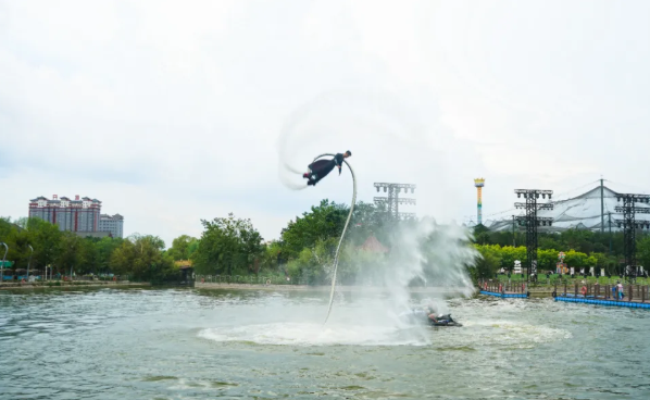 水上表演更是精彩絕倫。《獨竹水上漂》節(jié)目中,表演者們腳踩楠竹,在水面上輕盈滑行,仿佛在水上飛舞,引得觀眾們驚嘆不已?!端巷w人》的表演者們借助噴水裝置在空中翻轉(zhuǎn)騰挪,如同超人般翱翔于水面之上;而《水上火壺》則將傳統(tǒng)藝術(shù)與現(xiàn)代科技完美結(jié)合,火光與水花交相輝映,震撼的視覺效果讓觀眾們?nèi)滩蛔“l(fā)出陣陣喝彩和尖叫。鳳棲湖劇場內(nèi),大型舞臺劇《時空奇緣》的現(xiàn)場排練預(yù)演同樣精彩,演員們精湛的表演和動人的故事引得觀眾掌聲雷動,沉浸其中。