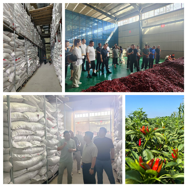 第一站實地參觀“子彈頭”、“三櫻椒”品種辣椒的生長情況,學習“麥椒套種”種植技巧,詢問專家種植模式、病蟲害防治和畝產(chǎn)情況。王崗鎮(zhèn)技術人員毫無保留地分享了田間管理的關鍵細節(jié)與多年積累的實用經(jīng)驗,通過細致觀摩和現(xiàn)場講解,系統(tǒng)了解了這一高效種植模式的核心環(huán)節(jié)——從精準選種、科學播種、病蟲防治到高效收獲、專業(yè)存儲及暢通銷售的全鏈條操作流程。第二站實地參觀了王崗鎮(zhèn)辣椒儲存專用冷庫,通過查看冷庫建設分區(qū)和分揀情況,詳細了解辣椒打包存儲技巧和市場托管銷售等關鍵環(huán)節(jié),為種植大戶安心發(fā)展種植注入“強心劑”。
