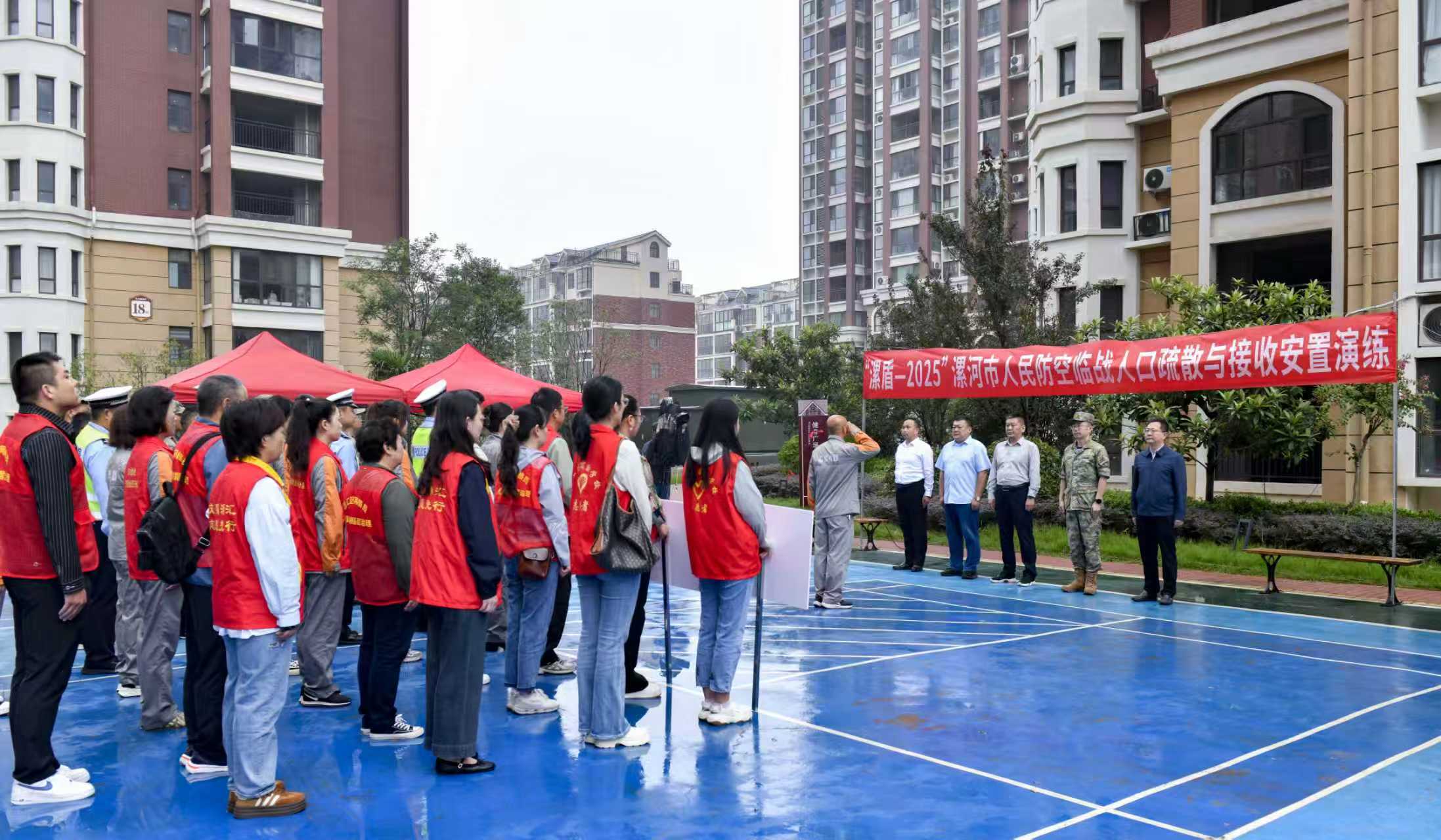 為進一步增強全民國防觀念和防空防災(zāi)意識,檢驗提升臨戰(zhàn)背景下人口疏散接收安置的組織指揮、協(xié)同保障和應(yīng)急響應(yīng)能力,漯河市國動辦聯(lián)合源匯區(qū)精心組織了此次演練活動。演練以模擬臨戰(zhàn)緊張態(tài)勢為背景,嚴格按照防空襲預(yù)案要求,圍繞預(yù)警發(fā)布、疏散引導(dǎo)、人員集結(jié)、交通運輸、物資補給、醫(yī)療救護、心理疏導(dǎo)、無人機干擾反制、接收安置等關(guān)鍵環(huán)節(jié)展開。市國動辦黨組書記、主任陳向凡、市應(yīng)急管理局二級調(diào)研員高洪濤、漯河軍分區(qū)動員處上校處長張海龍、市國動辦副主任樊永偉、源匯區(qū)政府副區(qū)長郭峰參加演練活動。