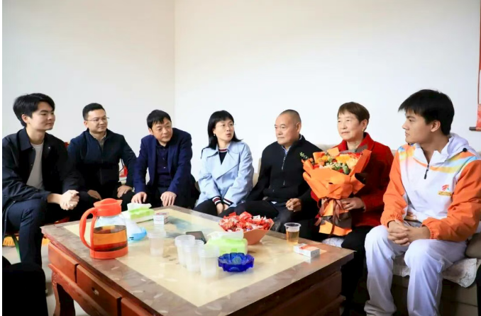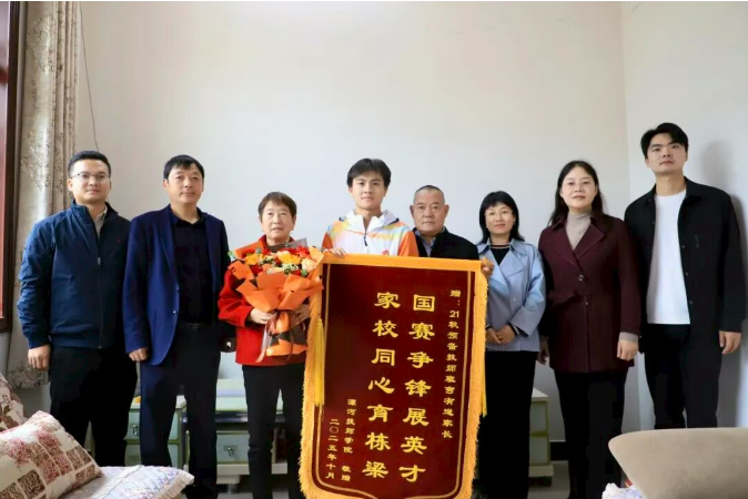 抵達選手家中后,院領(lǐng)導(dǎo)首先向家長和選手遞上紅彤彤的錦旗與沉甸甸的慰問品,“孩子能站上全國賽場拿獎牌,離不開家里的支持,也離不開學(xué)校的培養(yǎng),這是咱們共同的驕傲!”一句真摯祝賀,瞬間拉近了家校距離。
