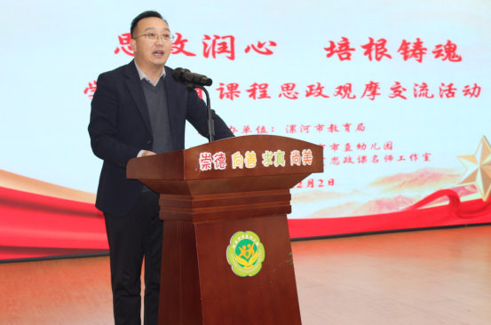 漯河市教育局黨組成員、副局長(zhǎng)聶廣橋在講話中指出,學(xué)前教育是基礎(chǔ)教育的重要組成部分,是人生成長(zhǎng)的啟蒙時(shí)期。在學(xué)前教育階段適時(shí)、適度、適宜地開(kāi)展思政啟蒙教育,幫助孩子們“扣好人生的第一粒扣子”,意義重大,責(zé)任非凡。組織這次全市范圍的觀摩活動(dòng),是為了樹(shù)立鮮明導(dǎo)向,引導(dǎo)全市學(xué)前教育工作者進(jìn)一步重視思政啟蒙,將其擺在保育教育工作的核心位置。同時(shí)集中展示一批在學(xué)前教育課程思政方面理念新、方法實(shí)、效果好的實(shí)踐案例,讓大家有機(jī)會(huì)相互學(xué)習(xí)、相互啟發(fā)、共同提高。全市各幼兒園要將思政啟蒙教育作為提升保教質(zhì)量的重要抓手,不斷總結(jié)經(jīng)驗(yàn),深化研究,大膽實(shí)踐,涌現(xiàn)出更多優(yōu)秀的成果和范例,為培養(yǎng)擔(dān)當(dāng)民族復(fù)興大任的時(shí)代新人打下堅(jiān)實(shí)的思想基礎(chǔ)。
