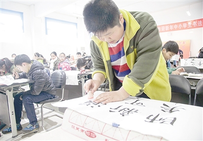 比賽評委、市書法家協(xié)會副主席劉穎峰說,通過觀看選手們的作品,發(fā)現(xiàn)其中有些學(xué)生很有天賦。書法進(jìn)入課堂后,對提高中小學(xué)生的書寫水平,普及傳統(tǒng)文化都有好處。(楊 光)