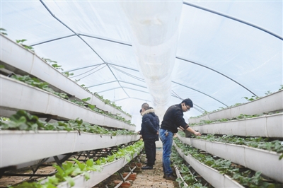 秸稈反應(yīng)堆技術(shù)是源匯區(qū)食品安全監(jiān)督大隊在精準扶貧過程中幫助群眾引入的。王新華帶記者進入基地的塑料大棚,一入棚,排排立體種植的草莓就呈現(xiàn)眼前。舒展的草莓葉子充滿盈盈綠意,其間怒放著朵朵小白花。與一般的塑料大棚不同的是,草莓上面的棚架上固定有兩條塑料薄膜制成的“長龍”,里面充滿氣體。“長龍”貫穿大棚兩端,“龍身”上扎有一個一個的孔。王新華對記者說:“這兩條‘長龍’是送氣筒,里面是落葉經(jīng)秸稈反應(yīng)堆技術(shù)處理后產(chǎn)生的二氧化碳氣體。”二氧化碳的氣源,是大棚一端的秸稈反應(yīng)堆。正在忙著為秸稈反應(yīng)堆打孔的陳小甫是大劉鎮(zhèn)前陳村村民,經(jīng)過一段時間的操作,他儼然成了秸稈反應(yīng)堆技術(shù)方面的行家里手。“這一種是‘內(nèi)置秸稈生物反應(yīng)堆’,其實就是把我們以前焚燒掉的玉米秸稈、樹葉等通過發(fā)酵,使它們轉(zhuǎn)化成蔬菜、瓜果所需要的二氧化碳。發(fā)酵過程中,還能為冬季蔬菜生長提供大量的熱量,促進蔬菜生長。使用秸稈生物反應(yīng)堆技術(shù)后,可以不施化肥、不打農(nóng)藥,生產(chǎn)出來的瓜果蔬菜是典型的有機綠色食品。”