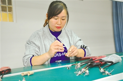 “考慮到村里一些不能外出的勞動力無事可做,特別是貧困家庭和低保戶,我們就本著為鄉(xiāng)親們做點事兒的念頭,大著膽子試一試。”電器公司負責(zé)人、范軍正的妻子柯會敏說。挑選工人時,電器公司首先考慮家里有富余勞動力的貧困家庭和低保家庭。公司吸納的工人中有6名來自村里的貧困家庭,3名來自低保家庭,2名是殘疾人,范海娜就是其中的一員。