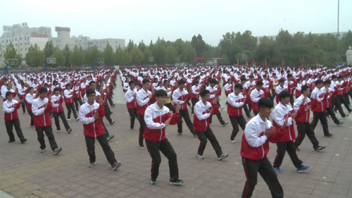 漯河四高體育教師王永剛:我們?yōu)榱藢W生終身體育的發(fā)展,去推廣心意六合拳,心意六合拳 你在辦公室 不分場合 不分男女老幼都可以練習,為學生的終身體育打下一個良好的基礎。心意六合拳在漯河四高得到了領導的重視,以后會發(fā)揚下去,爭取把我們漯河的國家級非物質文化遺產(chǎn)給它發(fā)揚光大。