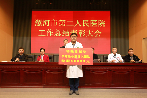 隨后表彰了2017年度先進(jìn)集體和先進(jìn)個人以及榮獲上級部門榮譽(yù)稱號個人,而含金量最高、最為榮耀,備受該院全院員工矚目的“特殊貢獻(xiàn)獎”李慧新及心臟介入中心團(tuán)隊作為壓軸大獎頒發(fā)。