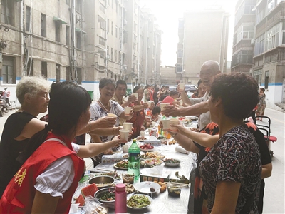在一片歡聲笑語中,居民們在一起度過了晚餐時間,桌子上幾乎所有的菜都被吃完。“這才是家常便飯,今天這頓飯吃得得勁。”活動臨近結(jié)束,不少居民端著自家的空盤子,高興地說。