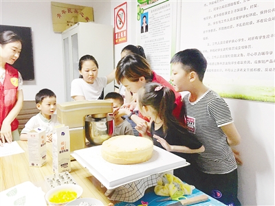 召陵區(qū)翟莊街道燕山路社區(qū)舉辦“歡樂慶六一”活動 志愿者帶領(lǐng)孩子一起制作蛋糕