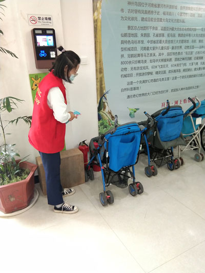 10月5日,市神州鳥園景區(qū)工作人員對(duì)景區(qū)公共物品進(jìn)行消毒,做好疫情防控,倡導(dǎo)文明旅游。