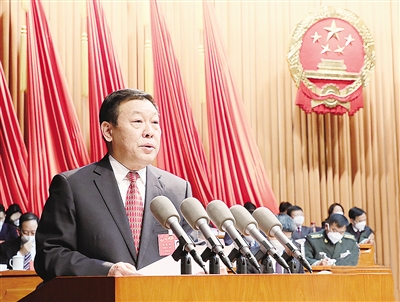 1月4日,市人大常委會主任李思杰在漯河市第八屆人民代表大會第一次會議上作市人大常委會工作報(bào)告。記者 張 佩 攝