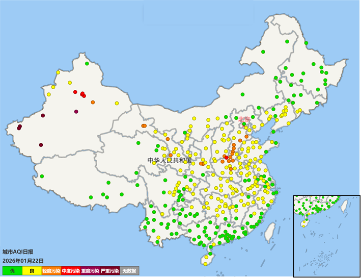 長江中游地區(qū):1月24日,空氣質(zhì)量以良至輕度污染為主。25—28日,受上游污染輸入及本地擴散條件不利等因素疊加影響,預(yù)計江西西北部以中至重度污染為主,湖北中東部及湖南中北部出現(xiàn)輕至中度污染。29日,空氣質(zhì)量以輕至中度污染為主。30日起,受強冷空氣及其伴隨的范圍性降水過程影響,空氣質(zhì)量將逐步改善至優(yōu)良水平。